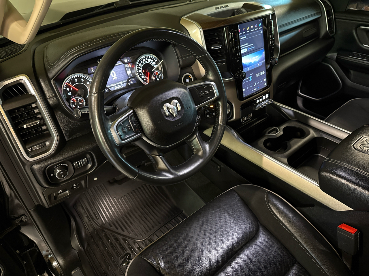 This Loaded Up Laramie 4x4 is One Heck Of A Truck!! In Excellent Condition Inside & Out and Upgraded with the Diamond Black Crystal Pearl Coat Exterior, this Ram is LOADED with Impressive Features which includes the following...Heated & Cooled Power Leather Seats, 12" Color Touchscreen, Remote Start, Power Adjustable Pedals, Heated Leather Wrapped Steering Wheel, Full Length Upgraded Floor Console, Backup Camera, 9 Speaker Audio System w/ Subwoofer, Mounted Audio Controls, Blind Spot and Cross Path Detection, Park Sense Front and Rear Park Assist w/ Stop, Rain Sense Wipers, Multi-Function Tailgate, Bed Topper, Spray In Bedliner, Custom Window Tint, 20" Fuel Wheels, 34" Nitto Ridge Grapplers, Full Cover All Weather Mats and SO MUCH MORE!!!
